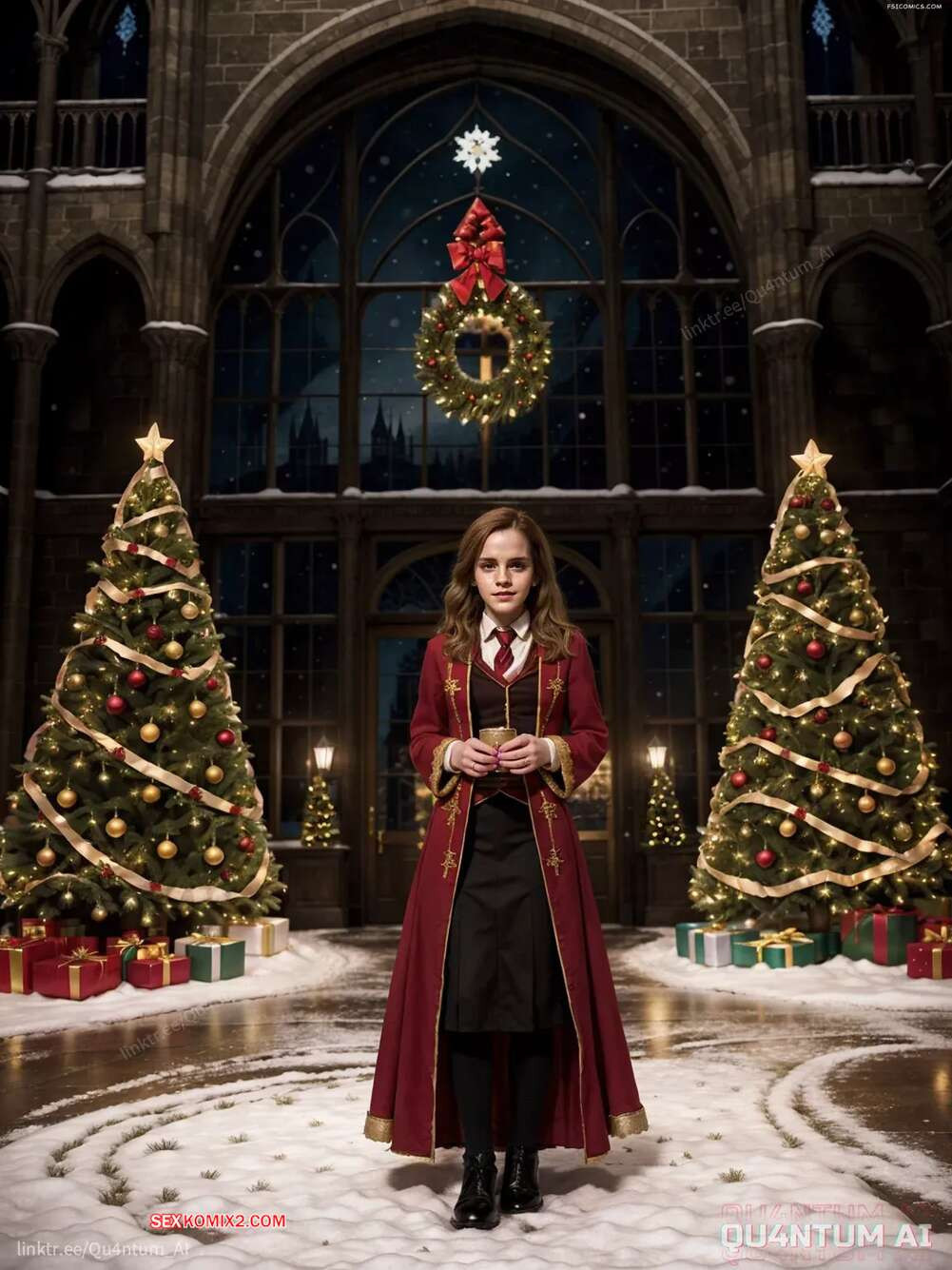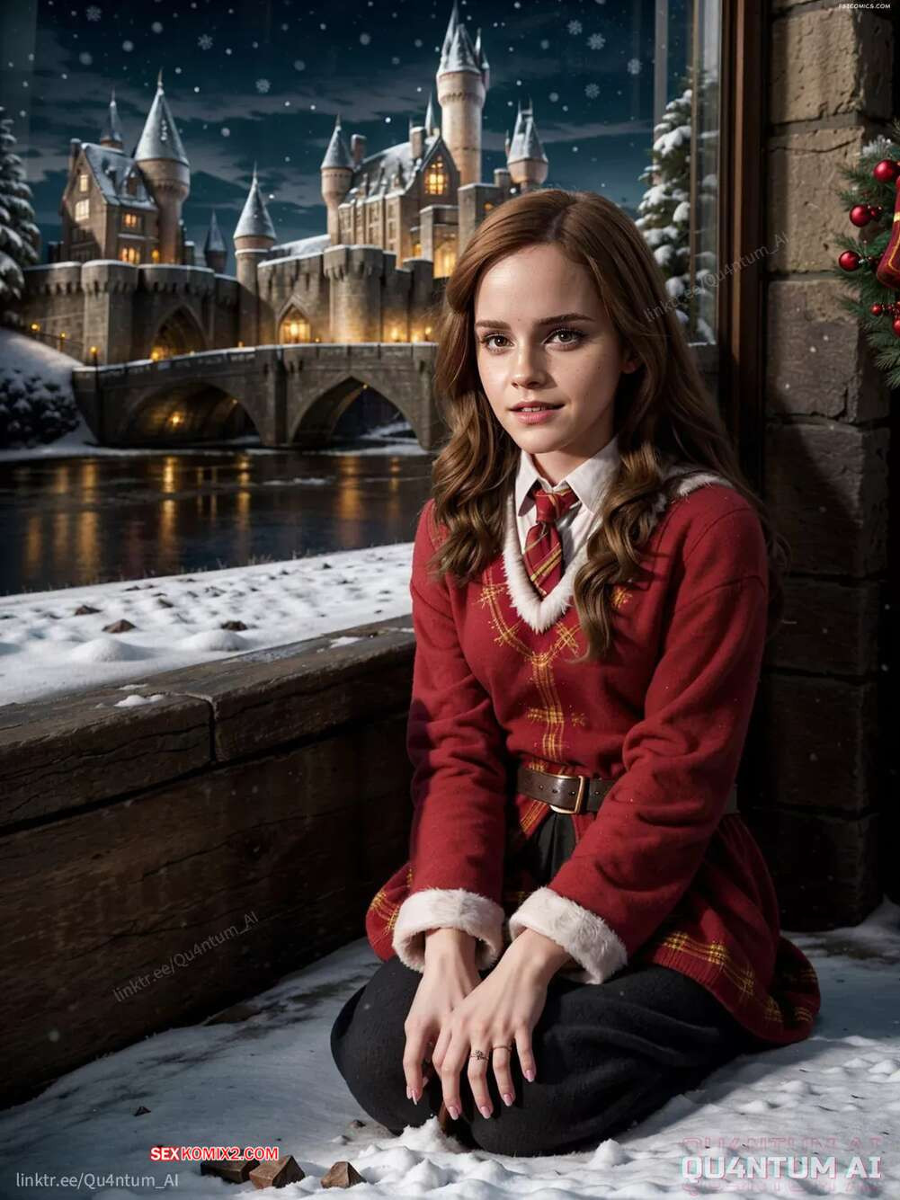 Emma Watson. Hogwarts Christmas Harry Potter Hermione Granger Gryffindor. QuantumAI